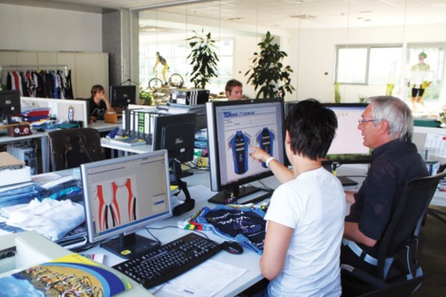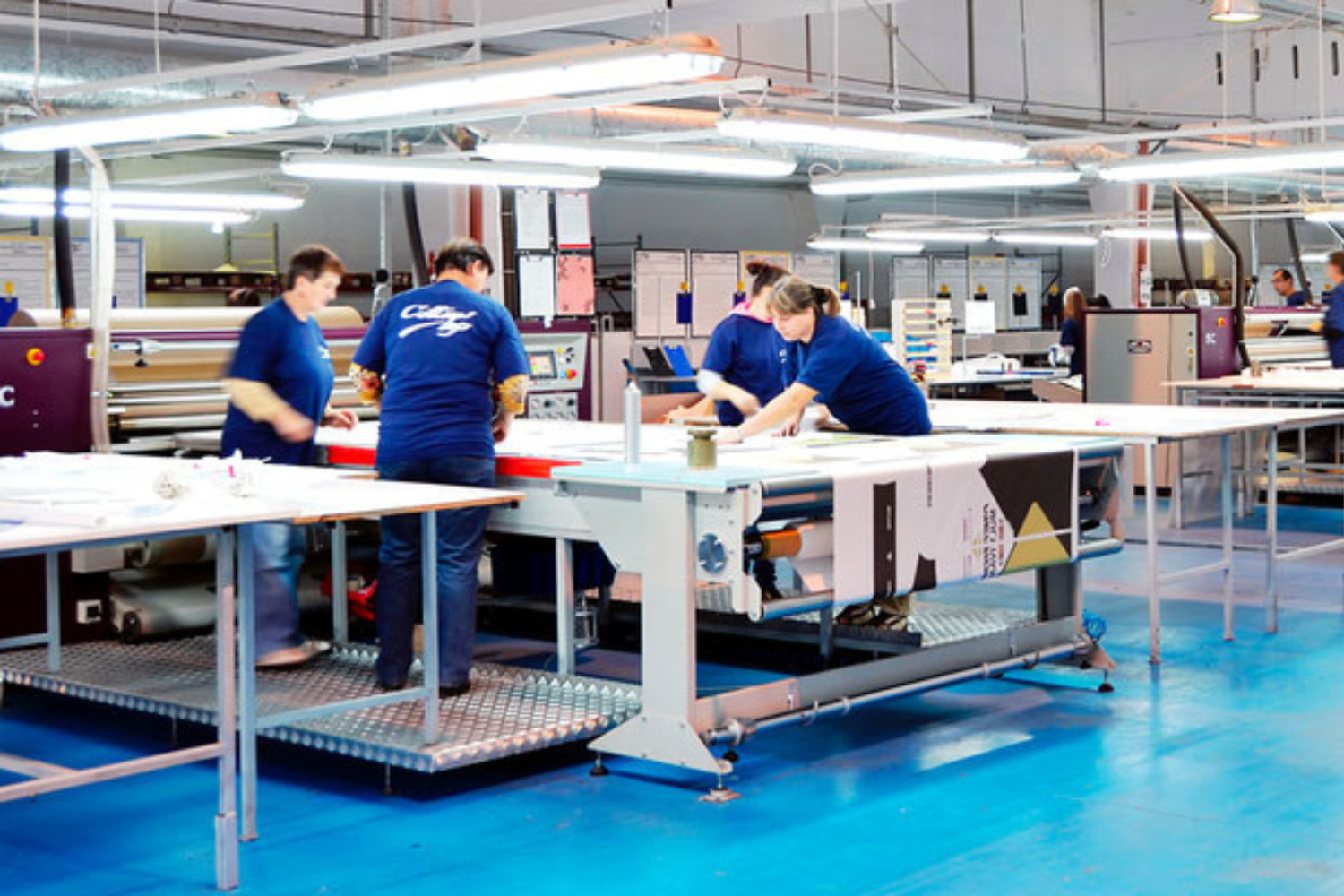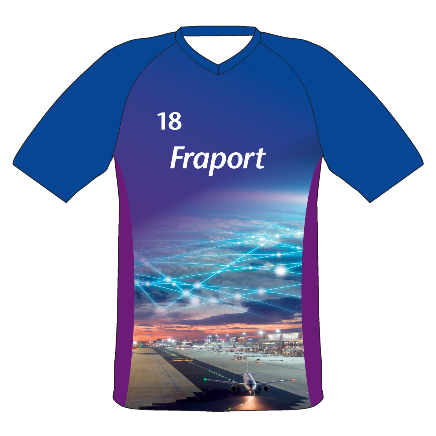 Der Druckvorgang erfolgt zuerst auf dem flachen Stoff - anschließend wird dieser Stoff zugeschnitten bzw. erst im dritten Schritt vernäht. Durch diesen Produktionsablauf können somit alle vorgesehenen Designs, Logos, Schriftzüge und Nummern gleichzeitig auf Vorderseite, Rückseite und Ärmel Zeit- und Kosten-effizient verarbeitet werden.